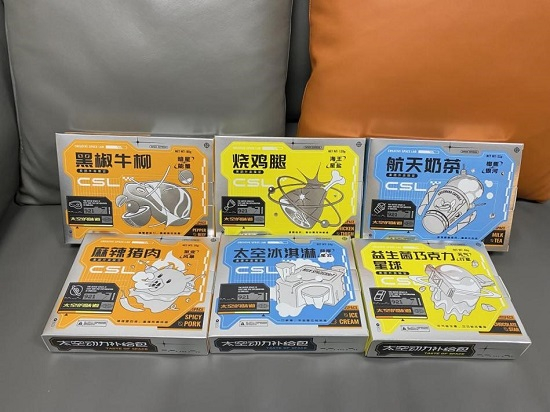 据介绍,一份礼盒套餐包括六种美食:烧鸡腿、麻辣猪肉、黑椒牛柳等多类荤菜,还有航天奶茶(椰香香蕉味)、太空冰淇淋、益生菌巧克力星球一类的甜品小食。每样菜式都源于航天食谱,比如奶茶中精心搭配独有益生菌,保证其健康。严格甄选无添加、上等的天然原料,口感丰富,肉质细腻。其中奶茶和冰淇淋还采用专利技术,最大程度地保留了食物原有的营养成分。