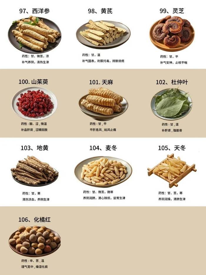 2025最新版药食同源食材名单,比以前增加了地黄、麦冬、天冬、化橘红……以下共计106种齐全了。大家转发收藏了。
