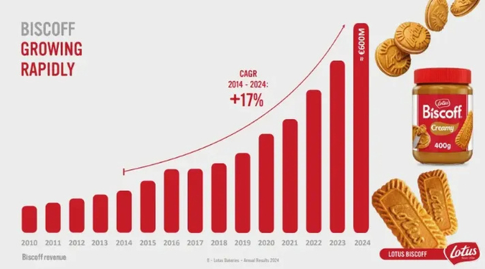 Lotus Bakeries的财报显示,2010年以来,Biscoff的销售额始终保持增长,并且从2020年开始增长速度明显加快。