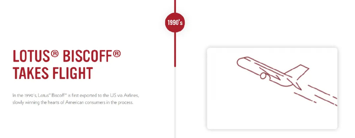 1986年,Lotus将其Speculoos饼干更名为“Lotus Biscoff”。Biscoff即为“饼干biscuit”和“咖啡coffee”的结合,进一步强化了产品和咖啡场景的联系。