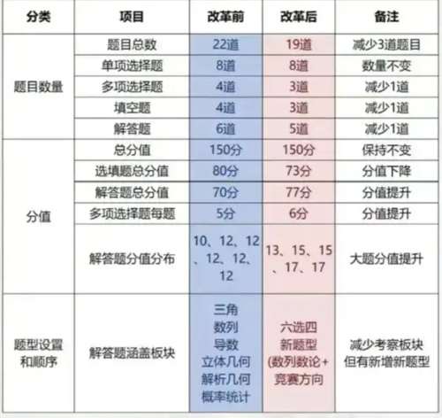 今年实行新高考的省份增加到29个。数学试卷的题目数量从22道调整为19道。物理、化学、生物、政治、地理这几门科目将采用等级赋分制,考生的最终成绩取决于其在全省的排名情况。值得注意的是,今年数学命题团队有所调整,由武汉的专家团队负责命题工作,预计试题难度会更加合理。