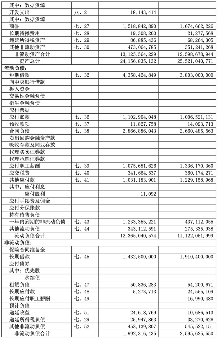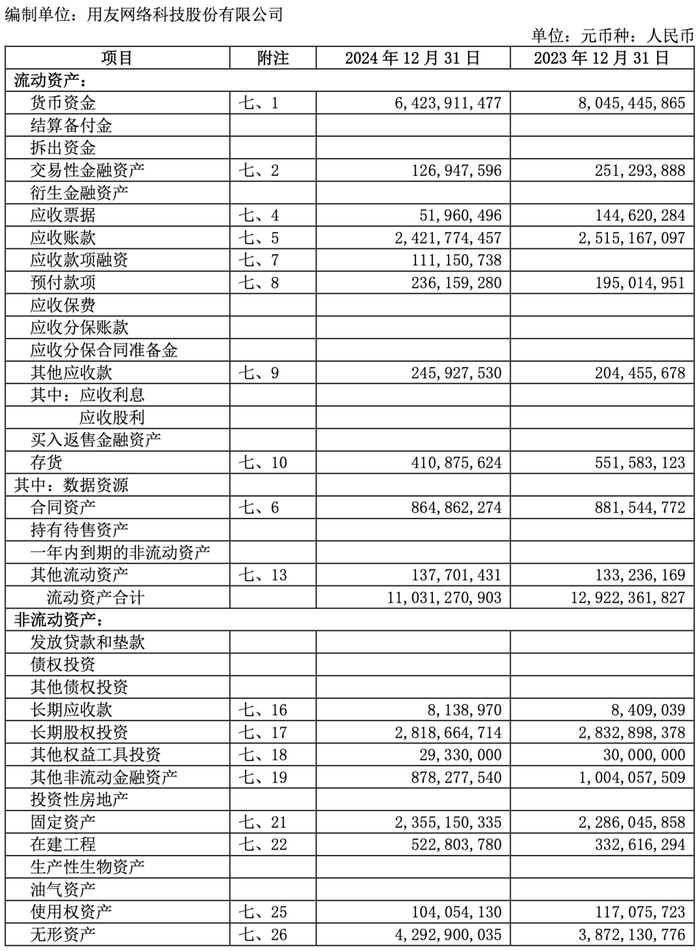 用友《2024 年年度报告》合并资产负债表: