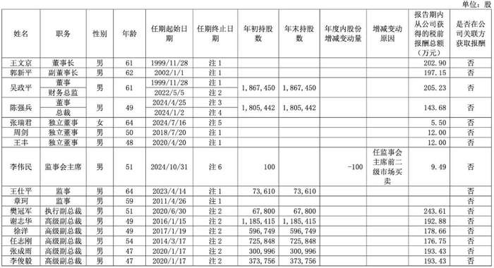 现任及报告期内离任董事、监事和高级管理人员持股变动及报酬情况: