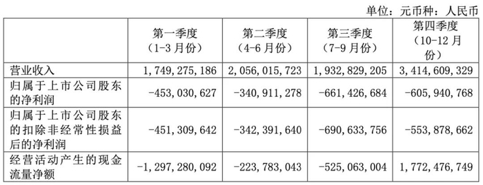 报告期内,归属于上市公司股东的净亏损额为 206,131 万元,归属于上市公司股东的扣非后净亏损额为 203,821 万元。
