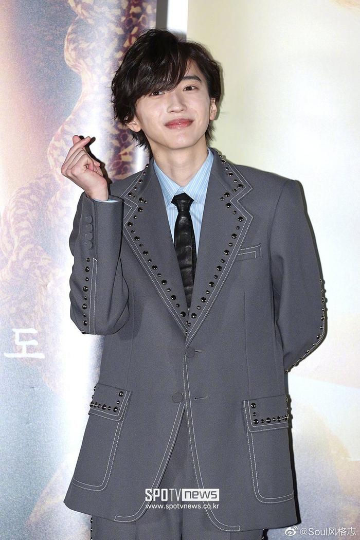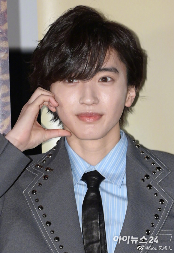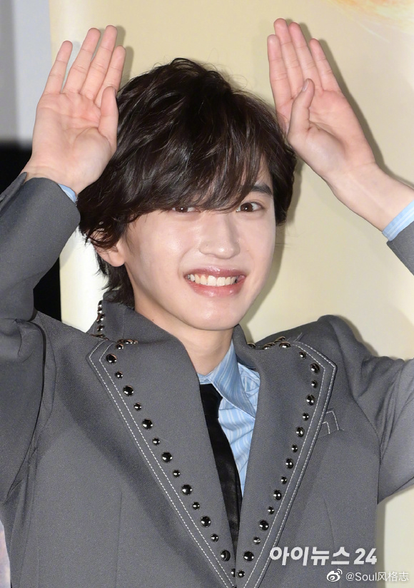 道枝骏佑韩国发布会新闻图清俊有型的大男孩 入乡随俗表演脸颊爱心好可爱!