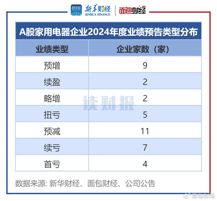 图1:A股家用电器企业2024年度业绩预告类型分布