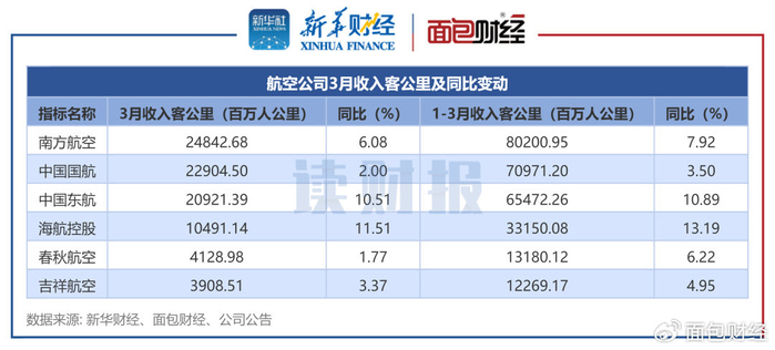 同比增幅方面,南方航空、中国东航3月客座率同比增幅较高,较去年3月分别增长2.4个百分点、2.92个百分点。吉祥航空3月客座率同比出现下滑,较去年3月下降0.89个百分点。