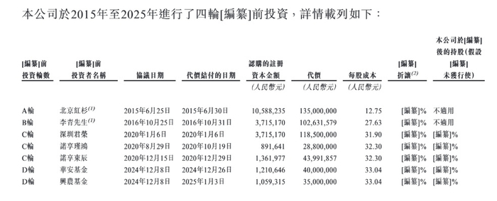 溜溜果园自2015年进行过四轮投资,最近一次融资为2024年12月D轮融资,每股成本为33.04元。