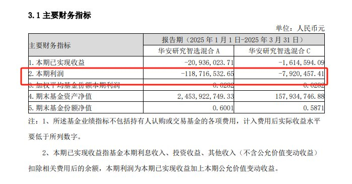 伴随净值下跌,华安研究智选一季度亏损约1.26亿元。