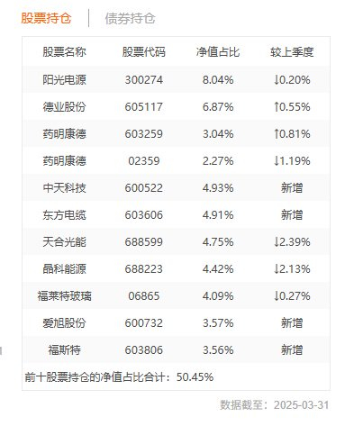 研究基金持仓,广发成长动力三年持有长期重仓股主要集中在新能源板块,包括阳光电源、德业股份、天合光能等。一季度,基金新增配置海上风电相关个股,包括中天科技、东方电缆等个股。
