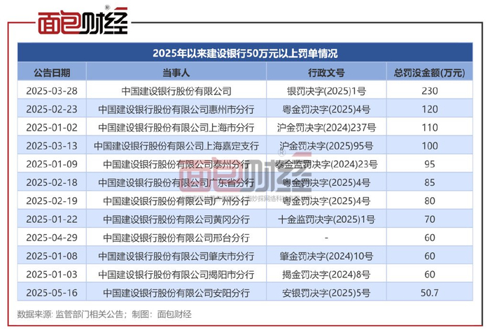 2025年3月28日,中国建设银行股份有限公司因违反金融统计相关规定,被中国人民银行处以罚款230万元。