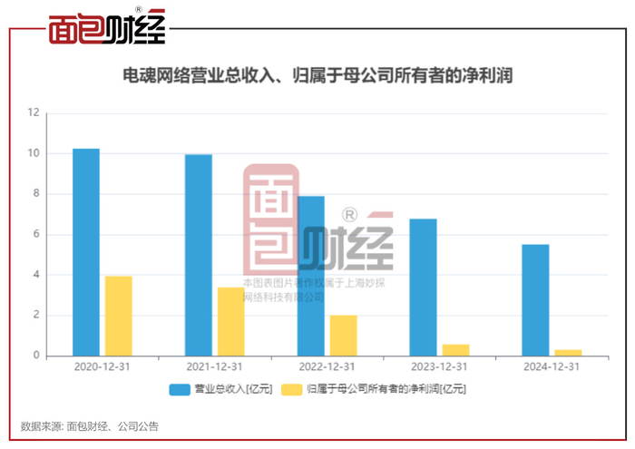受行业竞争及公司产品周期等因素的影响,电魂网络近年来业绩持续承压,自2021年以来已连续4年营收、归母净利润均同比下滑。
