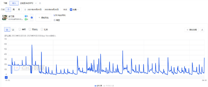 根据点点数据的监测,《梦三国》手游近年来在中国内地App Store的收入表现较为稳定。