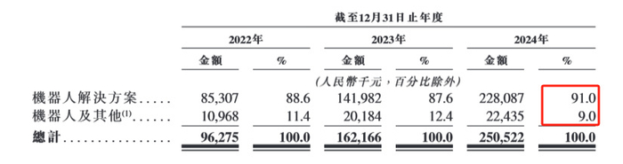 斯坦德机器人的收益主要来源于机器人解决方案的销售,其次则来自国内外的单体机器人及相关配件销售。2024年,公司来自机器人解决方案的收入占比达到91%。