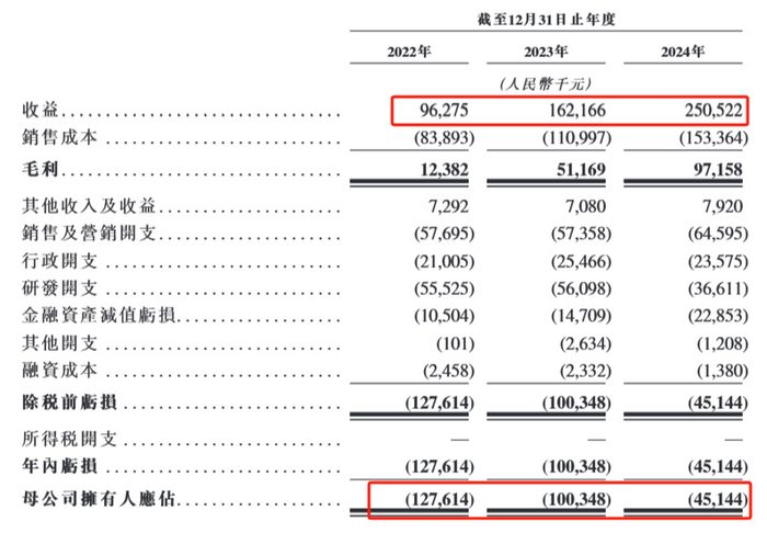 2022年至2024年,斯坦德机器人收入持续增长,但仍处于亏损状态。