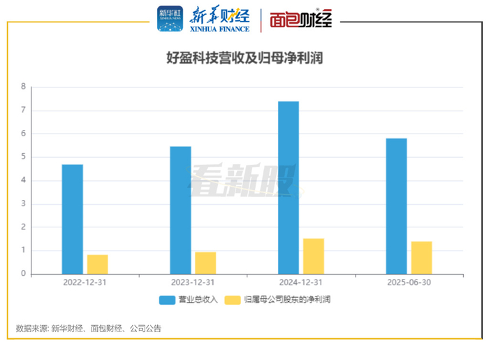 受益于低空经济政策支持,无人机动力系统需求大幅增长,以及竞技赛事推广带来的专业爱好者群体扩大,好盈科技的业绩持续增长。数据显示,2022年至2025年上半年,公司实现营业收入约为4.68亿元、5.46亿元、7.38亿元、5.8亿元人民币;同期。归母净利润分别为8188.85万元、9418.07万元、1.52亿元、1.39亿元。