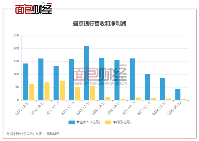 由于贷款市场报价利率(LPR)持续下调以及存量房贷利率下调,叠加有效信贷需求不足,2025年上半年,盛京银行的业绩继续下降。财报显示,该行实现营业收入43.26亿元,同比下降5.1%;净利润5.08亿元,同比下降14.1%;归母净利润4.94亿元,同比下降14.4%。