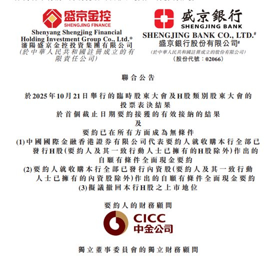 近期,盛京银行公告称,该行在2025年10月21日召开临时股东大会及H股类别股东大会以超过99.99%的赞成率通过了从香港联交所自愿撤回H股上市地位的议案。这也意味着这家老牌城商行正式启动退市程序。