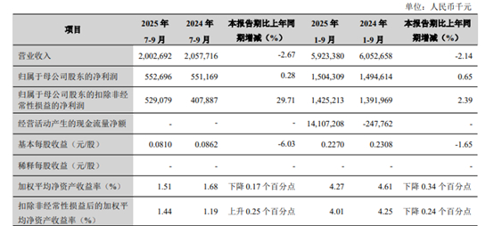 2025年前三季度营收下降2.14%,不良率居上市银行首位