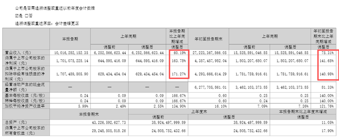 2025年前三季度,公司实现营收272.23亿元,同比上升75.31%;实现归母净利润43.57亿元,同比上升141.65%。