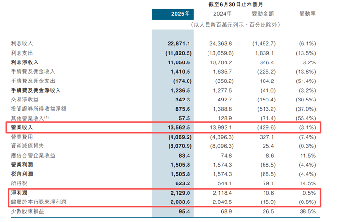 财报数据显示,2025年上半年中原银行的营收及归属于该行股东净利润同比均有微降。从营收构成来看,该行的交易净收益及投资净收益均同比降逾三成。