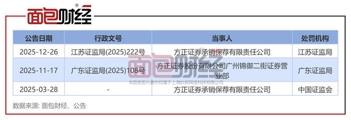 根据公开资料发现,2025年方正证券收到多张监管罚单。