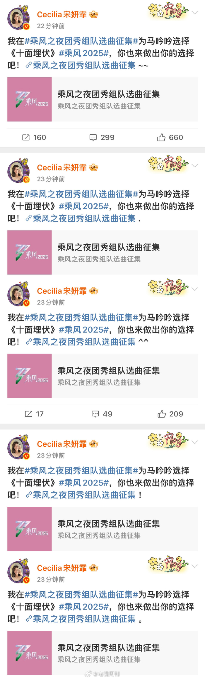 从宋妍霏连发五条微博为《十面埋伏》拉票,就能看出“霏马彤”对总决赛舞台有多重视!最后一战,就要整整齐齐!