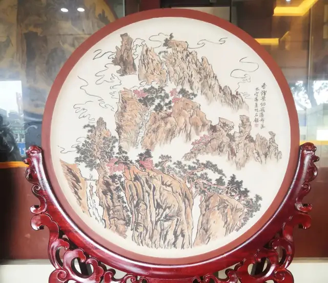 紫砂书画是“刻出来”的,陶瓷书画则是“写”出来的。从这个角度上说,紫砂书画因为需要运用雕刻技艺,因而难度更大、价值更高。刘新群表示,这是从一般原理上理解,其实艺术品的价值与工序的多少、难度的大小正相关,但不能划等号。刘新群常说,恩师毛国强先生是他学习的楷模,追随恩师习画刻陶以来,老人家对他说过最多的一句话就是“诚信做人,用心做陶,艺术成败看细节败”,这句话让终身受益。