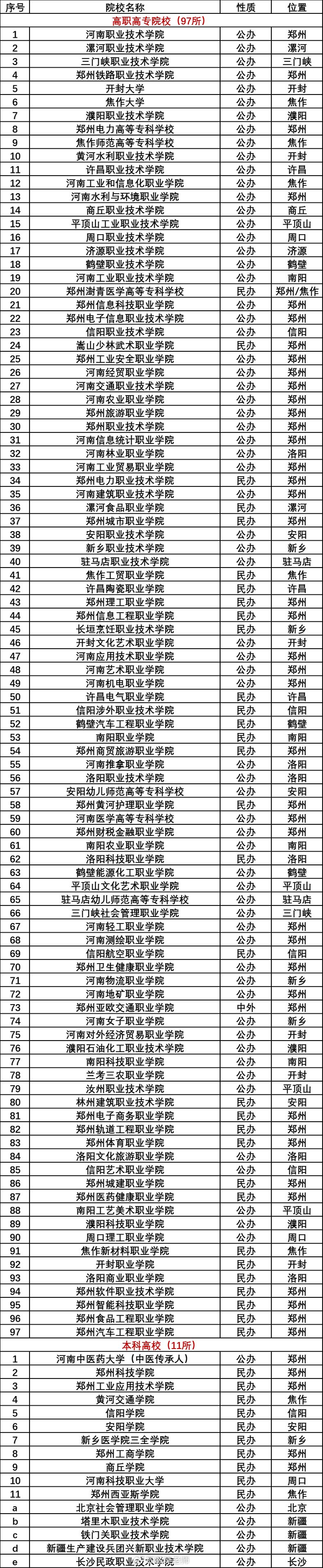2025年预测参加单招的院校1、郑州幼儿师范高等专科学校2、河南护理职业学院3、河南质量工程职业学院4、漯河医学高等专科学校5、驻马店农业工程职业学院6、信阳科技职业学院7、信阳工程职业学院8、河南新乡工商职业学院9、周口城市职业学院10、开封工程职业学院11、开封健康智慧职业学院12、周口文理职业学院2025年预测不参加单招的院校1、河南医学高等专科2、濮阳医学高等专科学校4、焦作大学5、河南司法警官职业学院6、商丘医学高等专科学校7、河南检察职业学院8、周口文理职业学院9、中原科技学院10、郑州财经学院11、郑州升达经贸管理学院备注:以上信息仅供参考,最终以河南省教育考试院官网发布为主。
