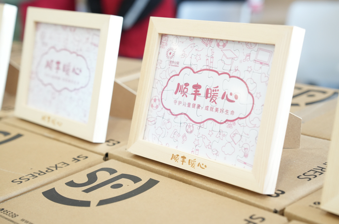 “暖心能量包”是顺丰暖心人文关怀的公益产品,按照“1+N”的衍生发展模式,即在1套暖心能量包核心物料的基础上,配套不同的捐赠物资,衍生出面向不同需求的暖心能量包。本次活动派发的是“暖心能量包(伊顿温暖包)”是由知名校服品牌伊顿纪德捐赠的儿童新衣和顺丰暖心项目定制的暖心帆布包、暖心拼图和相框、暖心水杯、暖心小勇士证书以及《给家长的一封信》等暖心特色纪念品共同组成,旨在为暖心小勇士们的健康成长加持能量,传递祝福。