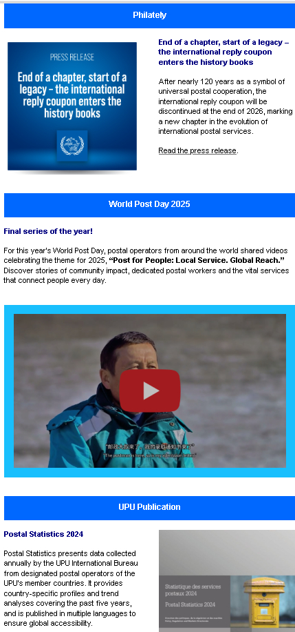 近日,万国邮联在其官网及YouTube平台发布《中国邮政:心之所向,路之所往》("Post for People: Local Service. Global Reach.")主题宣传片,讲述了新疆阿勒泰邮递员木哈买提别克的动人故事。