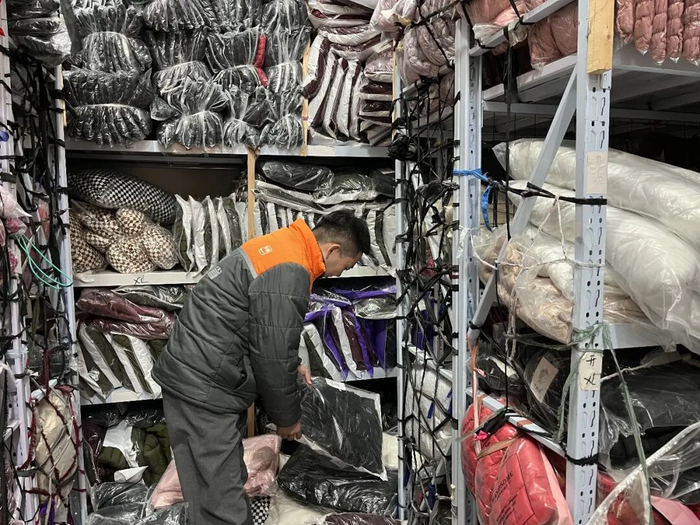 光山羽绒产业格局独具特色,订单零散、出货节奏快,也造成了仓储空间不足的压力。“很多人就在家里或车库操作,三五百件很占地方。货一旦出来,如果不及时收走,会耽误他们后续生产。”唐家升说,“因此,我们的服务要‘快’。”
