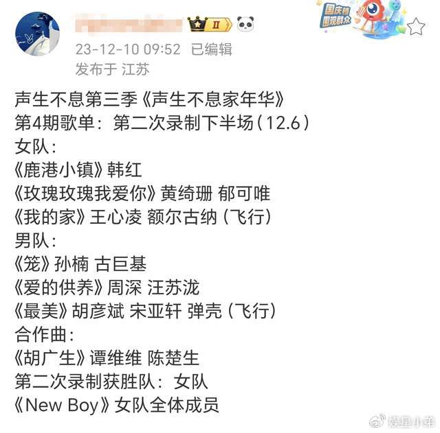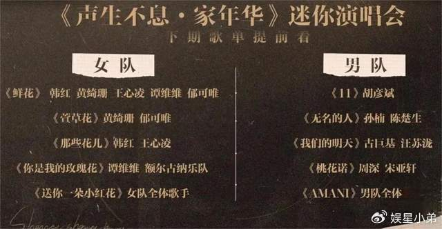但其实第三期和第四期是一同录制的,所以,目前据知名娱乐博主爆料,已经提前曝光了第四期的歌单,分别是: