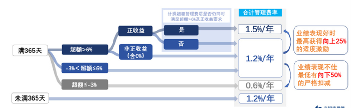 围绕上述费率安排,绑定了产品的业绩比较基准与持有人的实际回报,实现了“业绩好则多收费、业绩差则少收费”的双向激励。