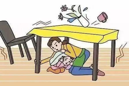 (2)躲在结实、不易倾倒、能掩护身体的物体下或旁边,如:桌、床等;也可跑到开间小、有支撑的房间,如:厨房、卫生间等。