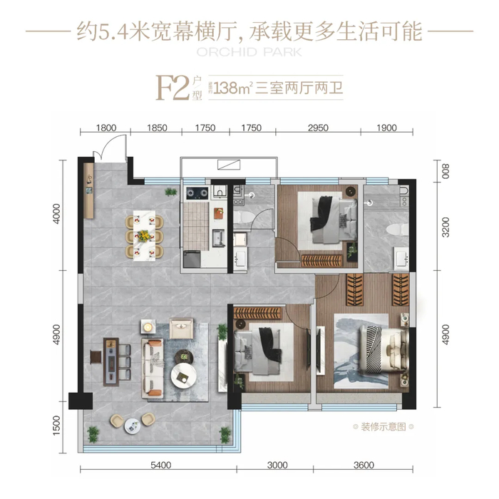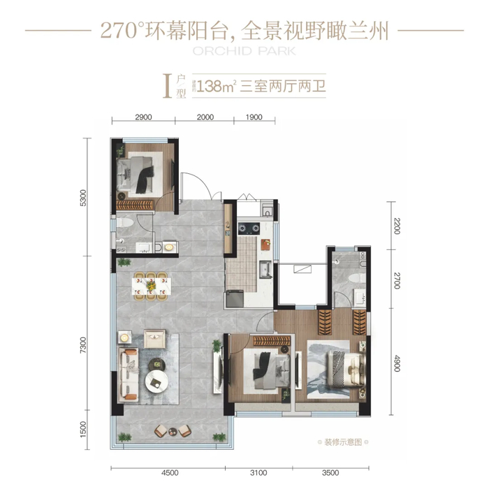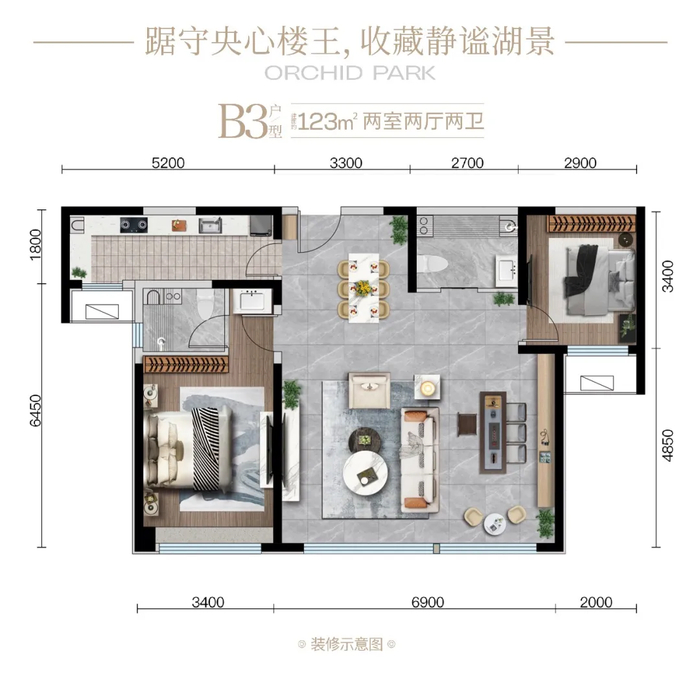 同时,270°转角阳台、大面宽落地窗、约3.1米层高、2T3/3T5布局等细节设计,共同塑造了奢阔的居住尺度,直逼“墅居”生活体验。