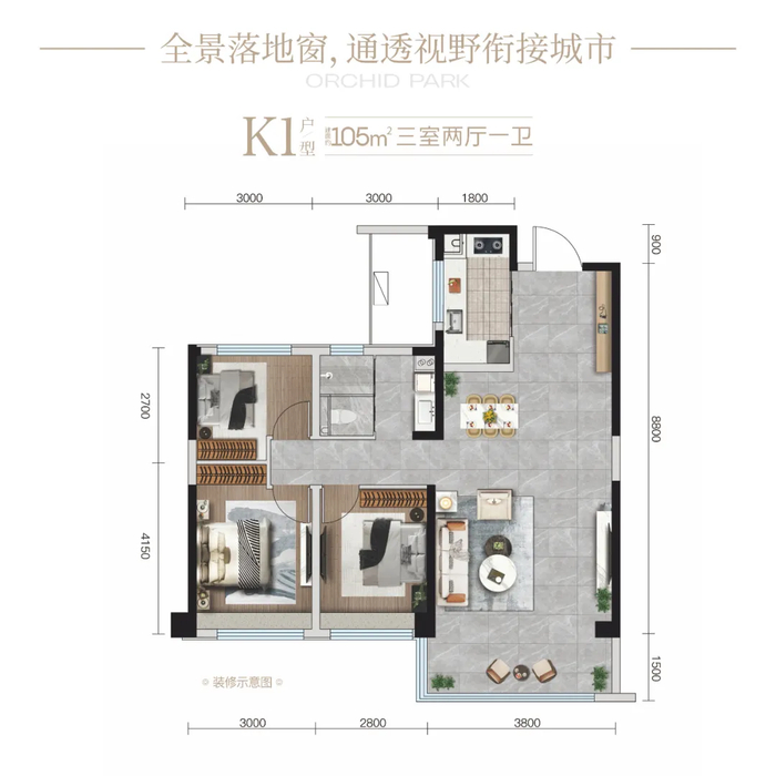 起步105㎡户型即配备L型转角阳台且三开间朝南;123㎡户型横厅尺度更是媲美传统140㎡以上户型;138㎡户型更以罕见“三面开窗”设计与超大公区迈入豪宅尺度;另有约350㎡空中豪宅解锁空中花园生活,尽显品质实力。