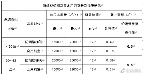 2)如果防烟楼梯间为剪刀楼梯间,则防烟楼梯间的加压送风量应乘以2.0系数。