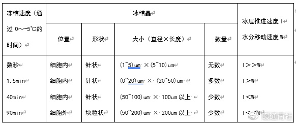 冻结速度与冰晶分布的关系: