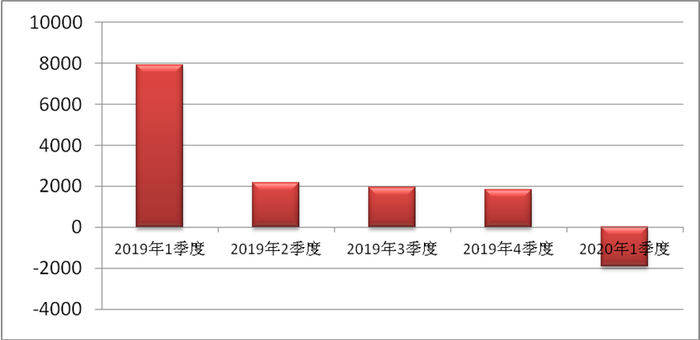 一季度亏损1908.53万元,去年同期盈利7927.94万元,利润大幅下降,各公司复工迟、订单减少等多方面原因导致亏损。2019年1季度至2020年1季度利润变动情况见图三。