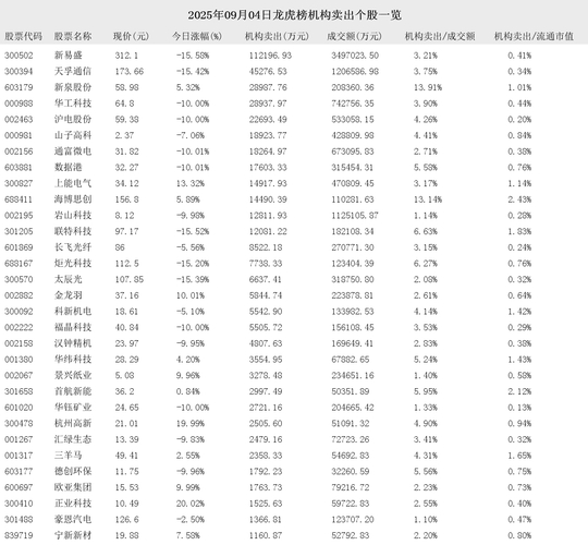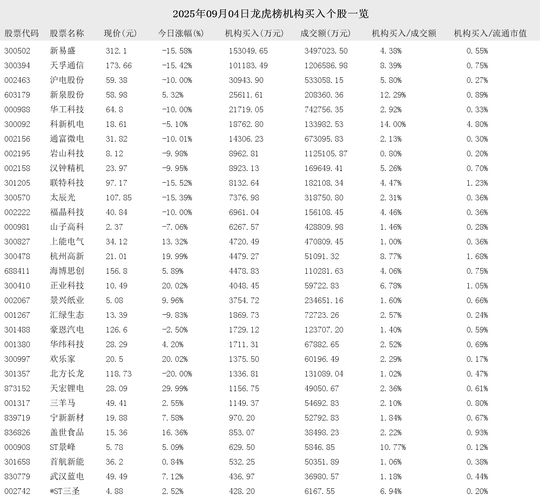 2025年09月04日盘后龙虎榜公开信息中,有68支股票出现了机构的身影。其中,有31支股票出现了机构买入,37支股票出现了机构卖出。