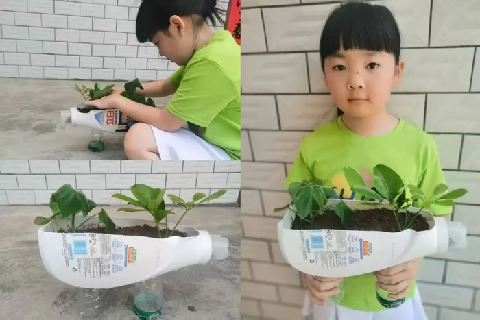“看,用完洗衣液的空瓶也可以变成漂亮的花盆。”东源县第五小学一学生正开心地展示自已的作品。为提升学生劳动素养,东源县第五小学组织开展“变废为宝”创意制作活动,让学生充分发挥主观能动性与创造力,收集生活中纸盒、塑料瓶、旧布料等废旧物品,通过巧妙构思与精细加工,制作出一件件实用或装饰性手工作品。这一过程不仅培养了学生的环保意识,更引导他们将低碳理念转化为日常行动。
