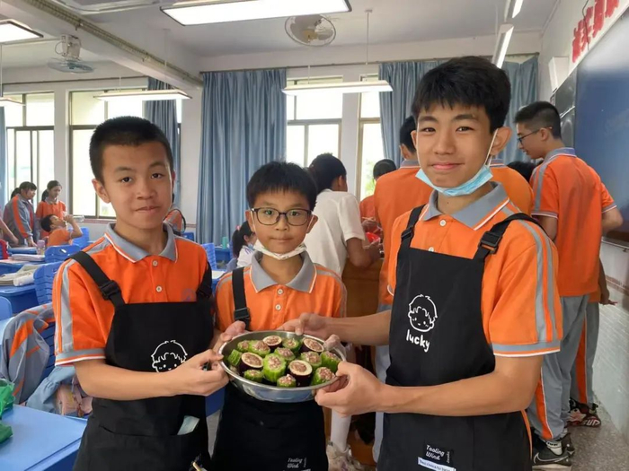 家庭是劳动教育的重要阵地。河源市第一小学将家务劳动纳入特色作业体系,鼓励学生主动承担家庭责任,为家人分担日常琐事。其中就有为家人做一道菜这一内容,不同年级还有不同的烹饪主题,一、二年级是“美味的鸡蛋”,三年级是做沙拉、炒青菜,四年级是“学做一道客家菜”,五年级是“巧做甜点”,六年级是“学做凉拌菜”等,通过家校社协同联动,引导学生体验劳动的快乐与价值。