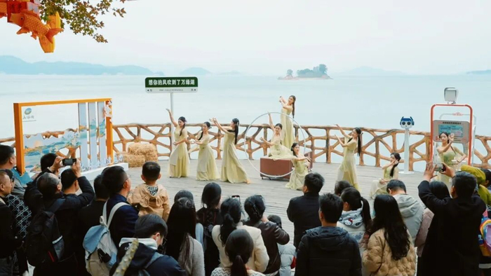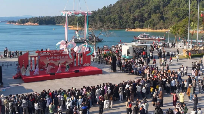 多个景区活动精彩纷呈。万绿湖风景区创新推出“飞天神韵·花舞迎新”暨十二花神“空中芭蕾”演艺,将自然山水与高空艺术完美结合,龙川杂技《蹬鼓》《抖空竹》表演让现场氛围更加热烈,万绿湖风景区三天揽客超10万人次。巴伐利亚庄园的“焰火跨年生活嘉年华”、客天下国际旅游度假区的“万物鸣朝”音乐嘉年华、春沐源小镇的“跨年烟花音乐夜”等活动,融合焰火、音乐、非遗、国潮等元素,营造出浓厚的节日氛围和沉浸式体验,单场活动最高参与人次超过5000人。