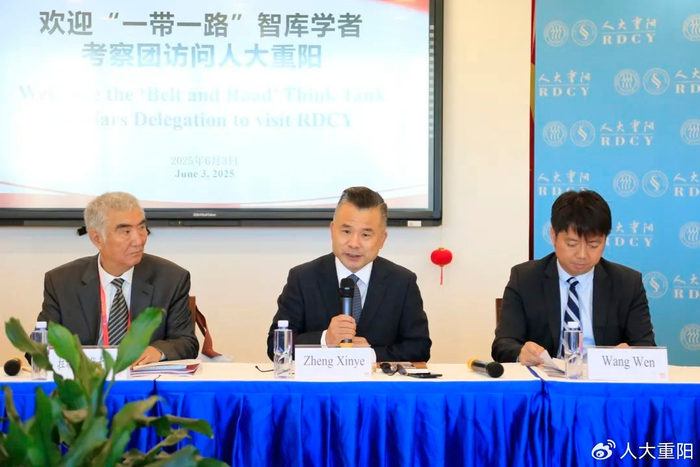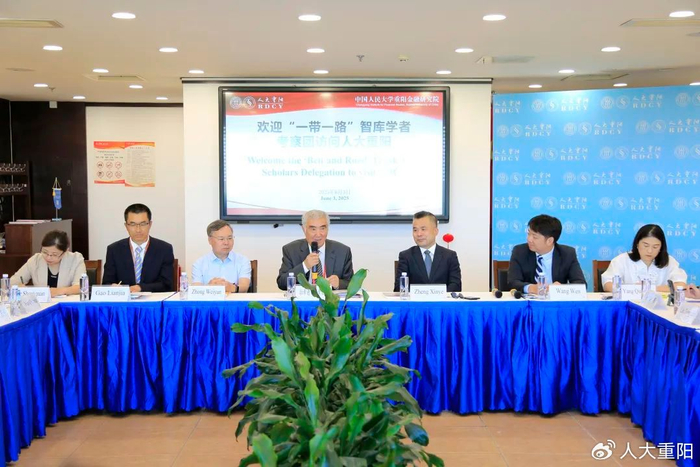 人大重阳网讯:2025年6月3日,在中联部支持下,“一带一路”智库学者考察团一行12人访问中国人民大学重阳金融研究院(人大重阳),双方围绕“一带一路”合作,中华文化海外传播,中外智库、高校、机构间交流与合作等主题展开深入交流。中国人民大学副校长郑新业,考察团团长、吉尔吉斯斯坦民族大学“一带一路”研究中心主任拉希德·优素普夫(Rashid Yusupov)发表致辞,人大重阳院长、全球领导力学院院长王文主持并发表主题演讲。