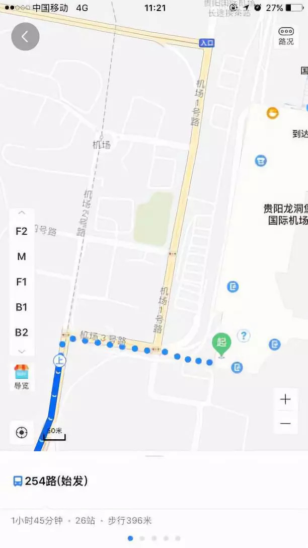 ②公交车:从贵阳龙洞堡机场出来后,找到“国际、港澳到达”(一般左转)后,向西直走300米左右,即可看到公交站牌。( 还可看机场指示牌或询问机场工作人员) 乘坐254路,经过3站 /乘坐258路,经过4站,约10分钟左右,到达贵阳东客运站站。下车后步行约500米,到达客运东站。