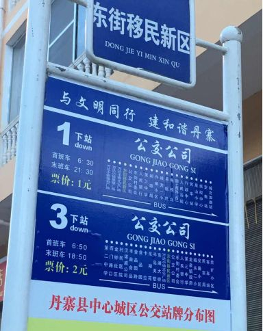 【县城交通】可到车站对面公交站台乘坐1路公交至丹寨万达小镇,公交车票价为1元,终点站为锦鸡广场。