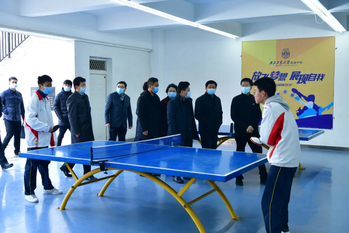 11月22日,时值“小雪”,天气骤寒。为深化体教融合,建设健康陕西,省十一届政协副主席张社年,率领省政协医药卫生体育委员会专职副主任刘昌军等考察组一行数人,在咸阳市政协副主席王巧萍、市教育局副局长马普庆、市体育局副局长王景华、区政协主席戴勇强、区教育局副局长李小平等人的陪同下,莅临咸阳启迪中学调研考察。