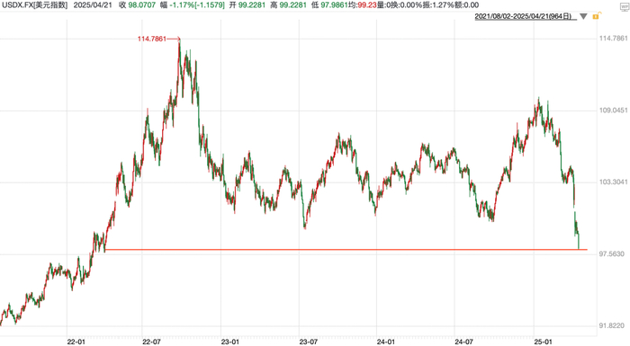 如果鲍威尔真的被特朗普开除了,那美联储将失去独立性成为政策附庸,美元的信用会下降,今天美元指数跌破了99,来到2022年3月份的位置。