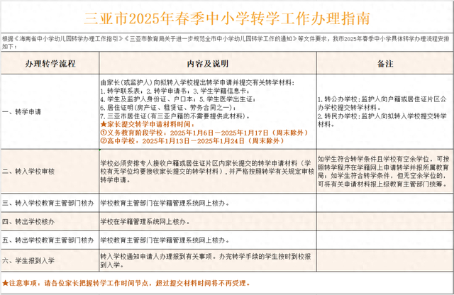 2025年春季中小学转学工作,将于2025年1月6日开始,请有转学需求的学生家长,提前做好准备,把握时间节点,申请时间、操作流程、所需材料下图所示: